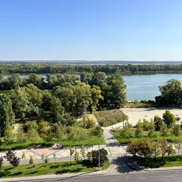 Квартира з панорамними вікнами, з яких відкривається панорамний вид на річку. Встановлено кондиціонер.