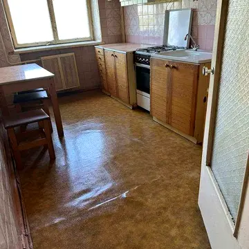 Квартира має звичайний житловий стан, без ремонту. Є балкон та лоджія. Буде встановлено бойлер після підписання договору. Є плита. У квартирі є лише ліжко в одній спальні. Пральна машина, холодильник та спальні місця повинні бути надані орендарем. Квартира здається сімї, військовим не здається. Можливе проживання з маленьким песиком (до 10 кг). Оплата включає перший місяць, заставу та комісію агентства нерухомості 50%%. Поруч є зупинки громадського транспорту. Квартира велика, з меблями на кухні. Є ванна.