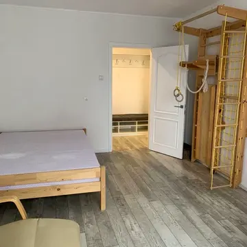 У кімнаті багато світла, гарний двоспальний диван, шафа-купе, робоче місце-стіл та стілець. Є вихід на великий, засклений балкон.
