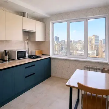 В кухні-вітальні- дорога вбудована кухня, багато світла, великий холодильник з морозильною камерою, індукційна варильна поверхня, витяжка, стіл зі стільцями, вбудована духова шафа, мікрохвильова піч, посудомийна машина, смарт телевізор. Є вихід на засклену лоджію з додатковим освітленням та сушаркою.