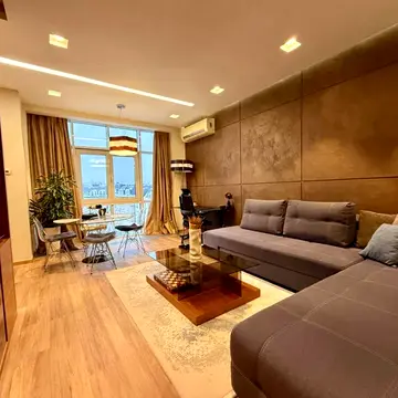 Зверинецкая 59. ЖК "Триумф" - премиум-класса! ————————————————————————— Панорамные апартаменты с современным Авторским дизайном! Включающий в себя возможность автономного отопления, современную систему очистки воздуха и многоуровневую очистку воды, максимальный уровень звукоизоляции, надежную охранную систему. Квартира полностью укомплектована брендовой мебелью и бытовой техникой "Miele". Рациональная планировка: гостиная с зоной столовой, кухня, кабинет, мастер-спальня с ванной и гардеробной, 2 детские спальни, игровая, 3 с/у, гардеробная комната, подсобные помещения. Гостиная имеет зону караоке с кинотеатром HI-End класса! Панорамный вид на Ботанический сад и город! ЖК имеет закрытую территорию, охрану и видеонаблюдение! Условия аренды: три залоговых месяца + авансовый Без комиссии при контракте от 1 года!