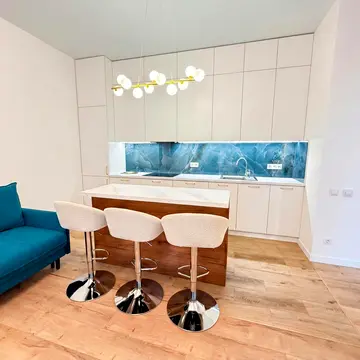 Квартира зі стильним ремонтом, виконаним за авторським проектом у сучасному стилі. Планування роздільне. Висота стелі 3 м. Двостороння квартира з просторою кухнею-вітальнею, французьким балконом, просторою спальнею з виходом на лоджію, ванною кімнатою.
