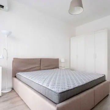 • Затишна спальня з якісним ортопедичним ліжком, вбудованими шафами та декоративною підсвіткою.