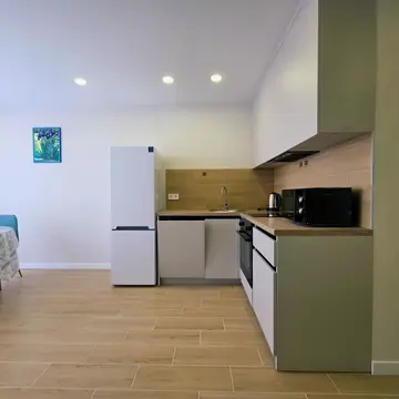 Загальна площа - 43.4 м2. Висота стелі 2.8m. Відкрита кухня-студія з ТВ та диваном, обідня зона з панорамним видом, спальня, простора ванна кімната, місткий гардероб.
