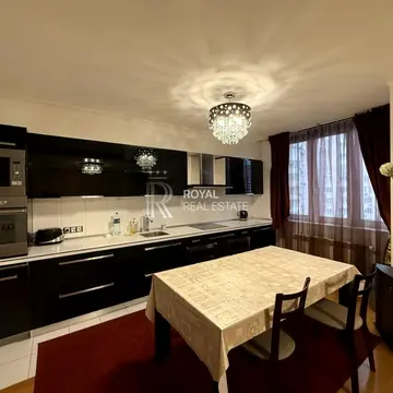 Квартира повністю мебльована та обладнана побутовою технікою вищого класу. Є вбудована кухня, шкіряний мякий диван та 2 крісла, 2-х спальний гарнітур з ортопедичним матрацом, дитяча з шафами та письмовим столом, розкладний диван. Встановлено склокерамічну плиту та духову шафу, витяжку, 2 кондиціонери, холодильник, бойлер, пральну машину, мікрохвильову піч, електрочайник, 3 телевізори, прасувальну дошку та сушку для білизни. Встановлено велику шафу-купе.