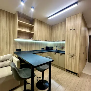 Планування: передпокій з великою шафою, повноцінна ванна кімната, простора кухня-вітальня має повністю укомплектовану робочу зону і зону відпочинку з розкладним диваном а також з виходом на засклену теплу лоджію, яку можна використовувати як робочий кабінет чи додаткову зону релаксації, на лоджії виконане освітлення, тепла підлога, інтернет розетка та елекричні розетки.