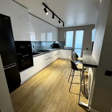 Квартира повністю мебльована якісними меблями та технікою (холодильник, пральна машина, варильна поверхня, духова шафа, мікрохвильова піч, газовий котел, витяжка, кондиціонер, бойлер). Кухня облаштована як для щоденного комфорту, так і для приготування вишуканих страв.