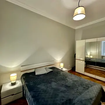 Квартира повністю мебльована та оснащена новою побутовою технікою, зокрема посудомийною машиною, сушильною машиною, електрочайником, холодильником, феном, варильною панеллю, праскою, мікрохвильовою піччю, духовою шафою, плитою, пилососом та пральною машиною. Також є багато шаф та окремий гардероб.