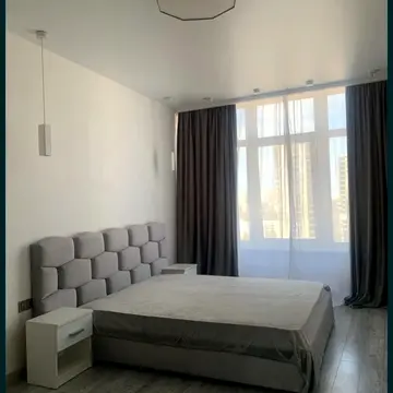 Квартира повністю мебльована, включаючи вбудовану кухню, барну стійку, диван, письмовий стіл, ліжко, шафу. Побутова техніка представлена холодильником, варильною панеллю, мікрохвильовою піччю, духовою шафою, пральною машиною, електрочайником.