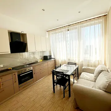Пропонується стильна, світла та доглянута квартира з євроремонтом. Планування роздільне, з кухнею-студією та заскленою лоджією. Квартира виконана у спокійних, універсальних відтінках: світлі стіни, приємна сіро-бежева палітра, акуратне покриття підлоги, продумане освітлення, лаконічні меблі. Санвузол виконаний у сучасному стилі зі світло-сірою плиткою та душовою кабіною.