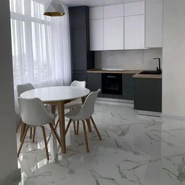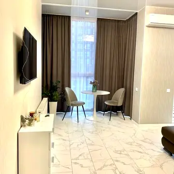 Квартира з дизайнерським ремонтом, панорамними вікнами та балконом/лоджією. Є кондиціонер, підігрів підлоги та душова кабіна.