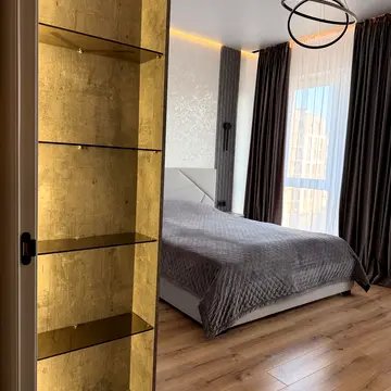 Квартира розташована на 5-му поверсі. Виконано сучасний якісний ремонт. Великі панорамні вікна наповнюють простір світлом і створюють відчуття простору.