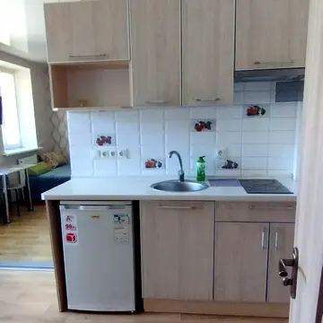 Затишна квартира-студія з балконом. Квартира повністю мебльована. У квартирі є велике ліжко, кухня з плитою, холодильником, пральною машиною, кондиціонером та Wi-Fi. Квартира має зручне розташування. Поблизу розташований парк Стрілка, до центру міста можна дійти пішки.