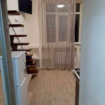 Квартира має планування студії. Виконано якісний євроремонт. Квартира повністю мебльована та оснащена необхідною побутовою технікою, зокрема електрочайником, холодильником, варильною панеллю, мікрохвильовою піччю та пральною машиною. На другому рівні розташований великий матрац. Квартира здається в оренду. Домашні улюбленці не допускаються. Гостинка має охорону території. Квартира розташована в районі Кінного ринку. В пішій доступності знаходяться станції метро Захисників України та Спортивна.