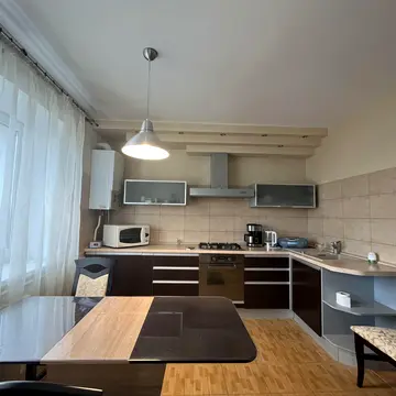 Квартира укомплектована меблями та побутовою технікою. Є електрочайник, плита, духова шафа, мікрохвильова піч, холодильник, пральна машина, праска, пилосос, меблі на кухні. Також є мультимедійні засоби: Wi-Fi, швидкісний інтернет, телевізор, кабельне та цифрове ТБ.
