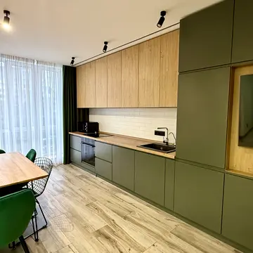 Ремонт дизайнерський — сучасні рішення, гармонійні кольори, функціональні зони. Техніка повністю вмонтована: духова шафа, варильна поверхня, посудомийка, кондиціонер, пральна машина і сушка, телевізор.