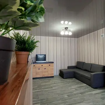 Здається затишна 2-кімнатна квартира в ЖК Княгинин Код квартири #38670535 1. Спальня: • Простора кімната з великим двоспальним ліжком з високим узголів’ям темного кольору. • На стіні розміщена велика шафа-купе з дзеркальними дверцятами, що візуально збільшує простір. • Світлі стіни створюють відчуття затишку і комфорту, доповнені мінімалістичними дизайнерськими рішеннями. 2. Кухня: • Стильна кухня з сучасними меблями біло-сірого кольору. • Пурпурова акцентна стіна додає яскравості та естетики. • Встановлено всі необхідні побутові прилади: плита, духовка, холодильник, електрочайник. • Мармурова стільниця та підлогове покриття з кам’яним ефектом підкреслюють сучасний стиль інтер’єру. 3. Коридор/вітальня: • Простора зона з підлоговим покриттям під дерево. • Є сірий диван, що додає затишку та функціональності. • Стіни оздоблені в теплих світлих тонах, створюючи приємну атмосферу. Квартира виконана в сучасному мінімалістичному стилі, з увагою до деталей та поєднанням функціональності з естетикою.