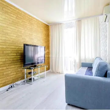 Нова та стильна квартира з сучасною кухнею, спальною зоною та великою вбиральнею. Квартира повністю мебльована та оснащена технікою. У кухні є мікрохвильова піч, чайник, кавоварка, посудомийна машина та холодильник. Спальна зона обладнана ліжком king-size. У будинку є 3 ліфти. Квартира розташована в центрі столиці, поряд з основними памятками міста. Метро "Олімпійська" знаходиться в десяти хвилинах пішки.