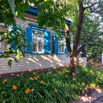Цегляний будинок у житловому стані з 5 житловими кімнатами, передпокоєм та зимовою кухнею. Є літня кухня з терасою. В будинку автономне газове опалення. Збережена піч для опалення дровами. Квартира частково мебльована: є 2 дивани, ліжко, 3 столи, шафки, трюмо, стільці та газова плита. Продаж. Аренда не передбачена. Будинок має прибудови: 3 комори, 2 гаражі, погріб, курятник та сарай (все з цегли). Є колодязь. Будинок розташований у безпечному місці. За 10 хвилин можна дістатися до ринку, за 15 хвилин - до водосховища, за 1 хвилину - до лікарні. Є город з фруктовими деревами (яблуні, абрикоси, слива, вишня). Будинок має огорожу, підсобні приміщення та сад.