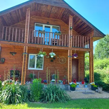 Деревяний будинок має два поверхи. Перший поверх оббитий сосновою вагонкою, на підлозі покладена плитка. Другий поверх оббитий ДСП, на підлозі деревяна підлога. В будинку є деревяні сходи, балкон і тераса. В будинку встановлений бойлер. Є вода зі свердловини та каналізація септик. Санвузол суміжний. Система опалення твердопаливна. Проведена електрика. В будинку є кухня, вітальня і дві спальні на другому поверсі. Є холодильник, кухонні меблі, скляний стіл, розкладний диван і шкіряний, а також двоспальне ліжко. На території є альтанка, мангал, підсобні приміщення, огорожа, камін, сад і город. Будинок розташований у місцевості з швидкісним інтернетом та Wi-Fi. В будинку встановлена охорона, камера і сигналізація. Також є відеоспостереження.