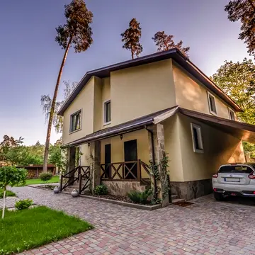 Пропонується сучасний заміський будинок у м. Київ, у тихій локації поруч із лісом та всього за 5 хвилин їзди від метро Житомирська. Закрита територія забезпечує приватність і безпеку, а продумане планування та якісні матеріали — комфорт для життя. Площа будинку — від 180 кв.м, додатково дві тераси по 40 кв.м та балкон. Ділянка — 4,4 сотки, з бруківкою та газоном, є можливість облаштування басейну. Будинок збудований з повнотілої червоної цегли (400 мм), утеплений мінеральною ватою 100 мм. Перегородки також цегляні. Дах — 4-скатний з бітумної черепиці, утеплення перекриття — 200 мм мінеральної вати. Фасад: перший поверх — клінкерна плитка, другий — термодошка (вільха). Внутрішній стан — під чистове оздоблення: гіпсова штукатурка стін, суха стяжка на обох поверхах, тепла підлога на першому та другому рівні. Вікна REHAU 86 мм, 3-камерні, з фурнітурою REHAU. Комунікації: електроенергія 3 фази, 16 кВт розведена електрика за проєктом забудовника вода розведена трубами REHAU свердловина 70 м каналізація — централізована котел Vaillant підведення під інтернет Ідеальний варіант для тих, хто шукає якісний, енергоефективний будинок у зеленій зоні столиці з швидки