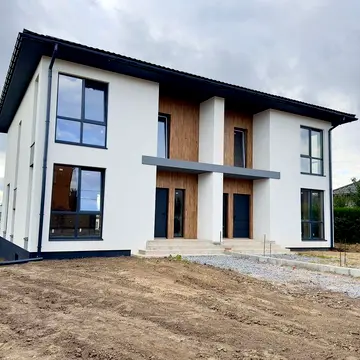 Котедж після будівельників. На першому поверсі розташовані кухня-вітальня, кімната, санвузол та тамбур. На другому поверсі - три окремі кімнати, санвузол та балкон. Є просторий підвал площею 60 кв.м. Проведені комунікації: централізоване водопостачання, електрика 7 кВт, септик 9 кубів, газ. Санвузол роздільний. Система опалення індивідуальна газова. Продаж від забудовника без комісії. Є можливість розтермінування без %%. Зручна локація, асфальтований доїзд до самого будинку. Сусіди продовжують будівництво. Котедж побудований з червоної цегли в півтори цеглини, утеплений пінопластом - 10 см. Дах утеплений мінватою - 20 см. Є балкон, цоколь, підвал, сад, город. Площа ділянки - 5 соток.