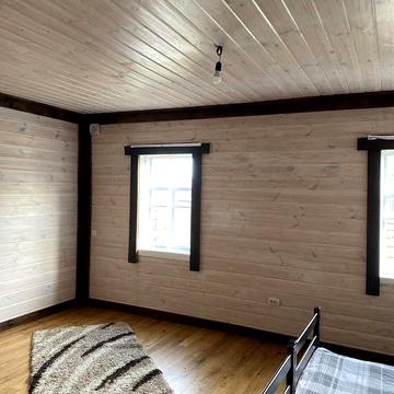 Будинок має авторський проект. Планування включає дві ізольовані спальні, великий зал, простору кухню та суміжний санвузол. Будинок побудований із натурального дерева, дах покритий металочерепицею. Встановлені металопластикові вікна по всьому периметру.