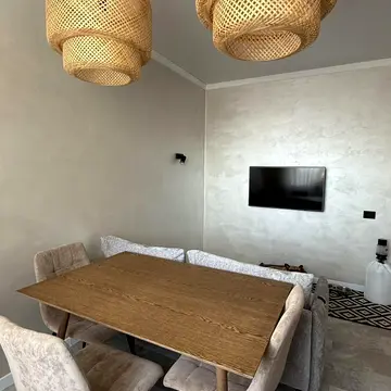 Квартира з суміжним санвузлом. Планування - студія. Загальна площа 54 кв.м. включає спальню 27 кв.м. і кухню-вітальню 27 кв.м. Висота стелі до 4 метрів. Зроблено сучасний якісний євроремонт. На кухні та у ванній кімнаті італійська плитка, якісна сантехніка. У кімнатах ексклюзивні шпалери, італійські двері та цікаве освітлення. Підлога - керамічна плитка та ламінат. Квартира має індивідуальне газове опалення. Комунікації включають вивіз відходів, газ, електрику, центральну каналізацію. Асфальтована дорога. Квартира мебльована. На кухні є меблі. У квартирі є телевізор, кондиціонер і пральна машина. Перегляди за домовленістю. Квартира розташована у житловому фонді 2011-2020-х років. Квартира має зручне місце розташування, все поруч. Квартира оснащена пожежною сигналізацією.