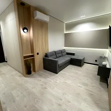 Продам 1-кімнатну квартиру площею 42 м² на 19 поверсі в ЖК «66 Перлина» з видом на море, місто та з авторським ремонтом під кураторством дизайнерки Олени Нечипорук. Саме ЖК «66 Перлина» у Kadorr City вважається найкращим будинком, адже він розташований у кутовій частині комплексу, подалі від дороги, поруч з іподромом, і повз нього проходитиме найменше людей. У квартирі всі меблі виготовлені на замовлення (з фасадами німецького бренду та доводчиками), встановлена сантехніка європейської якості, а вбудована техніка — преміальних брендів Bosch та Samsung. Планування квартири продумано до найменших деталей, що полегшить вам життя у майбутньому. У квартирі просторий коридор 4,6 м² з місткою шафою, зоною для взуття та дзеркалом із підсвіткою на всю висоту стіни. Праворуч по коридору — вхід у суміщений санвузол площею 4,3 м² з глибокою шафою, у якій знизу встановлено пральну машину Samsung (завантаження 9 кг і можливістю дозаправки), посередині — дві полички, а зверху — місце для ваших господарських речей (швабра, віник тощо). За шафою — душова кабіна з гартованого скла з тропічним душем. Унітаз підвісний (з інсталяцією) та гігієнічним душем. Умивальник — авторський, а під ним тумба з двома поличками. Також встановлене велике дзеркало на всю стіну з підсвіткою. У санвузлі змонтовано теплу підлогу та дизайнерський рушникосушар. Спальня площею 10 м² — невелика, з двоспальним ліжком, ортопедичним матрацом (160×200 см), двома підвісними приліжковими тумбочками, підвісом над ліжком та двома стильними бра. Також у спальні передбачено місце під телевізор (виводи вже зроблені). Найкраще місце в квартирі — це кухня-вітальня площею 19,3 м², з якої є вихід на відкриту лоджію, звідки відкривається красивий краєвид на море та місто. Кухонний гарнітур під стелю з вбудованою технікою німецького бренду Bosch: холодильник, варильна поверхня, духова шафа та посудомийна машина. Також на кухні стоїть розкладний стіл із двома стільцями. У вітальні розташований розкладний кутовий диван, невелика поличка з настінним бра, а вздовж стін встановлена декоративна панель із підсвіткою, на яку змонтовано телевізор Samsung 50 дюймів, а під ним закріплена довга полиця. З вітальні також є вхід у гардеробну 2,2 м² з розсувними дверима, що рухаються по дерев’яних панелях. Крім того, на ще одній дерев’яній панелі встановлено потужний кондиціонер люксового бренду Cooper&Hunter, який здатен не лише охолодити всю квартиру, а й обігріти її за потреби. Загалом квартира робилася з любов’ю, в авторському стилі і головне — без економії! Саме тому вона чекає нових власників, які любитимуть і доглядатимуть її так само, як і я :) Телефонуйте — домовимося про перегляд у зручний для вас час.