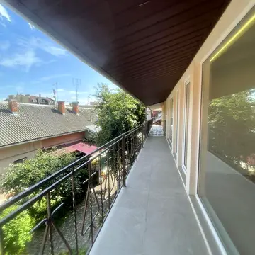 Квартира розташована на двох поверхах півособняка. На першому поверсі є передпокій, кухня, технічна кімната або гардеробна, велика вітальня з високими стелями та можливістю облаштування каміна. На другому поверсі розташовані просторий санвузол та дві великі кімнати з виходом на довгий балкон. Квартира після капітального ремонту, з дизайнерським ремонтом. Світлі просторі кімнати, хороша шумоізоляція. Висота стелі 50 метрів. Оновлені всі комунікації, автономне опалення. Тип будинку - чешка. Престижний район, близько до центру, зручна транспортна розвязка, поруч магазини, школи, садочки. Квартира без меблів, готова до заселення. Наявне зовнішнє утеплення. Оздоблення стелі - підвісна стеля, підлога - керамічна плитка та ламінат, внутрішнє оздоблення - фарбування, керамічна плитка та дерево.