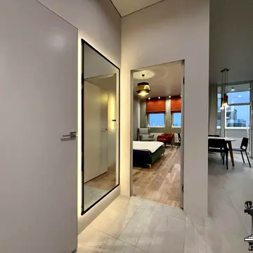 Податок для покупця при купівлі - 1% Сучасна однокімнатна квартира 52,3 м2 в новому ЖК «Мanhattan City». Квартира розташована на 27-му поверсі 36-ти поверхового будинку. Повністю мебльована та обладнана усією необхідною технікою. Усі матеріали, сантехніка та техніка якісна і дорога. Планування: спальня з шафами, зоною відпочинку, кондиціонером та телевізором; окрема гардеробна кімната; вбудована кухня: холодильник, посудомийна машина, духова шафа, варильна поверхня; засклений балкон; суміжна ванна кімната: душова кабіна, туалет, бойлер на 80 л, пральна машина, електрична сушарка для білизни. Оптоволоконний інтернет. Тепла підлога. Зроблена шумоізоляція стін. Закрита територія, охорона та відеоспостереження 24/7. Власний трирівневий паркінг. Поруч знаходяться банки, кафе, ресторани, нова пошта, магазини, McDonald’s. 10 хвилин пішки до метро Політехнічний інститут.