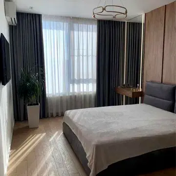 Квартира повністю укомплектована меблями та технікою. Є вбудована кухня, духова шафа, мікрохвильова піч, 2 холодильники, індукційна плита, витяжка, пральна машина, зручне ліжко з двоспальним матрацом, гардеробна, телевізор.