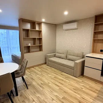 Простора, світла квартира з авторським ремонтом. Практичне планування для комфортного проживання: кухня-студія та окремо спальня. Є два балкони, один з яких засклений. Квартира не кутова. Квартира продається з усіма меблями та технікою, включаючи холодильник, пральну машину, посудомийну машину, вмонтовану кухонну техніку та кондиціонер. Телевізори не входять до комплекту. Ідеальний варіант як для комфортного проживання, так і для орендного бізнесу. Сучасний житловий комплекс. Квартира має зручне розташування. У пішій доступності є парк і річка для прогулянок та відпочинку, центральний ринок, супермаркет та центр міста. Квартира має панорамні вікна, що забезпечують багато денного світла та відчуття додаткового простору.