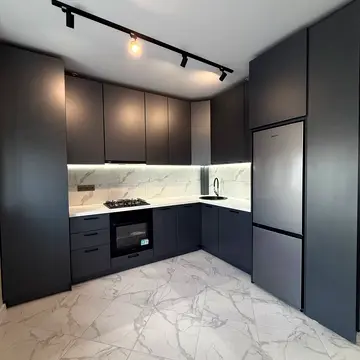 Повністю укомплектована кухня – сучасна техніка (посудомийна машина, холодильник, варильна поверхня, духова шафа, мікрохвильовка), зручне зонування, затишний обідній куточок із диваном і столом — ідеальне місце для ранкової кави або вечері з друзями.
