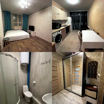 Планування: кухня-студія 20 м², кімната 12 м² з нішею під шафу, просторий гардероб з бойлером, пральною та сушильною машинами, санвузол 5 м².