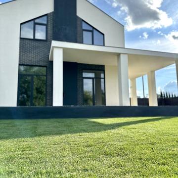 Сучасний, двоповерховий котедж у закритому котеджному містечку м.Бучи. Будинок зведений за всіма технічними нормами, всі приміщення в будинку функціональні. Загальна площа: 181,7 кв.м., ділянка 12,6 соток. Особливості планування: велика вітальня, кухня з виходом на терасу, 4 спальних кімнати, 3 з/в, 2 вбиральні, хол і топкова. У будинку високі стелі, якісні видові вікна та деревяна тераса для відпочинку. Будинок побудований з цегли, фасад та дах утеплені, дах натуральна черепиця Braas, з паро- та гідро-барєром та системою відведення зливової води. Фасад комбінований – елементи дерева у комбінації з декоративною штукатуркою. У будинку встановлено сигналізацію. Усередині зроблено чистову штукатурку стін, розведення сантехніки, електрики, розведено теплу підлогу по 1-му та 2-му поверхах. Встановлено два котли (електричний та газовий), бойлер непрямого нагріву, система тиску води, залита чистова стяжка підлоги. Прибудинкова територія облагороджена, виконано ландшафтний дизайн, доріжки та місце для кількох автомобілів викладено тротуарною плиткою. Правильна посадка будинку дає можливість максимально задіяти земельну ділянку під зону барбекю, альтанку, також можна організувати критий навіс для авто. На території КМ створено кооператив з обслуговування будинків, є цілодобова охорона. Будинок збудований у тихому районі елітної приватної забудови. Неподалік від нього є ресторани «Toscana Grill», «Отаманша». Також поряд знаходиться красивий Бучанський парк, тенісні корти "Кампа".