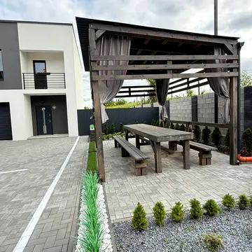 Будинок має гарне та зручне планування. На першому поверсі розташована велика кухня-вітальня з діючим каміном та виходом на невеличку терасу, коридор, санвузол та окремий вхід в цокольне приміщення. На другому поверсі знаходяться 2 кімнати, велика гардеробна кімната та балкончики. Третій поверх займає велика батьківська спальня з власним гардеробом та санвузлом. Встановлені усі лічильники (газ, світло, вода). Будинок має автономне газове опалення з двоконтурним котлом. На першому поверсі тепла підлога. Нова проводка та сантехніка. Будинок повністю мебльований та укомплектований усією побутовою технікою. Використані дорогі меблі та техніка. Будинок цегляний, утеплений ззовні (10 см), з дахом з німецької черепиці, також утеплений 30 см мінвати. Будинок знаходиться на земельній ділянці площею більше 1 сотки. В загальному дворі є велика альтанка. Забезпечена парковка. Будинок розташований у дуже зручному, тихому районі з асфальтованим доїздом. Поруч гарні сусіди. Будинок з новим сучасним дизайнерським ремонтом, виконаним з високоякісних матеріалів. Встановлена охоронна система Ajax. В будинку продумані всі деталі інтерєру, комфортно та стильно. Підвал може слугувати як укриття. Закрита територія з сучасним облаштованим двором та дитячою зоною.